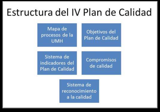 En 2013 han participado en el IV Plan de calidad todos los departamentos, titulaciones, institutos de investigación y unidades administrativas. La participación se concreta en el desarrollo de las acciones previstas en cada curso y en la consecución de objetivos de mejora incluidos en el Sistema de indicadores. Los buenos resultados se recompensan a través de financiación extraordinaria a aquellas unidades que cumplen con los estándares previstos y cuya evolución es positiva.