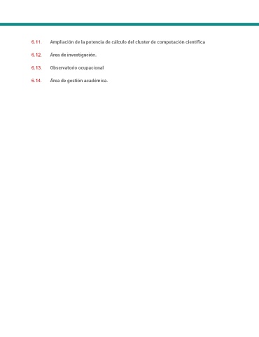 6.11. Ampliación de la potencia de cálculo del cluster de computación científica 6.12. Área de investigación. 6.13. Observatorio ocupacional 6.14. Área de gestión académica.