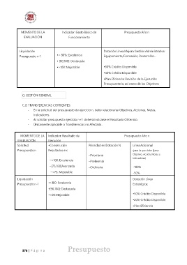 Presupuesto n-1 •< 80%: Excelencia Equipamiento, Formación, Desarrollos…