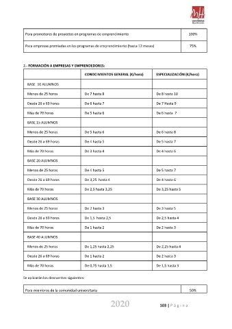 CONOCIMIENTOS GENERAL (€/hora) ESPECIALIZACIÓN (€/hora)