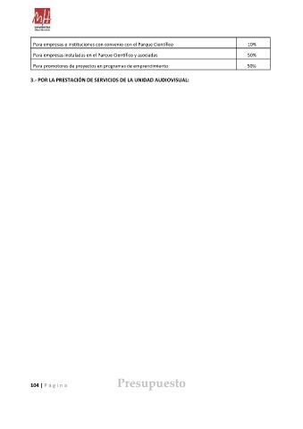 Para empresas e instituciones con convenio con el Parque Científico 10%