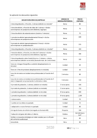 1 hora de edición, o fracción de vídeo de 1 cámara + rótulos Horas 75
