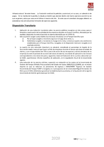 establecidas por el Parque Científico, recogidas en la Disposición Adicional recogida en el