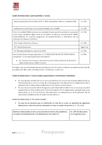 una deducción del cuadro de deducciones 1 al efectuar la matrícula.