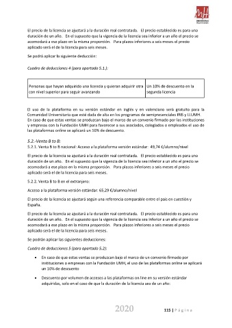 instituciones o empresas con la Fundación UMH, el uso de las plataformas online se aplicará