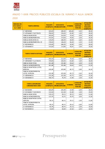 ANEXO T-XXIII: PRECIOS PÚBLICOS ESCUELA DE VERANO Y AULA JUNIOR