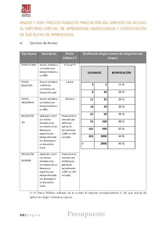 ANEXO T-XXIV: PRECIOS PÚBLICOS PRESTACIÓN DEL SERVICIO DE ACCESO