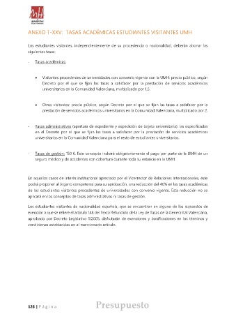 ANEXO T-XXV: TASAS ACADÉMICAS ESTUDIANTES VISITANTES UMH
