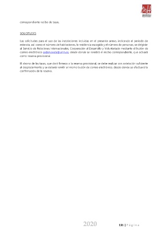 Las solicitudes para el uso de las instalaciones incluidas en el presente anexo, indicando el periodo de