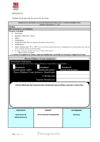 Informe Motivado del Vicerrectorado Competente (que justifique exención o reducción):
