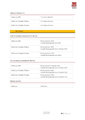 Tarifa uso UMH Precio por hora: 100 €