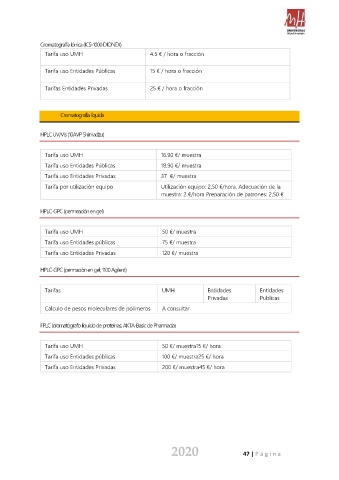 Tarifa uso UMH 50 €/ muestra15 €/ hora