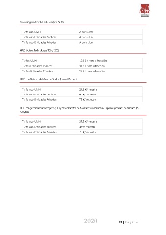 Tarifa uso Entidades públicas 45€/ muestra