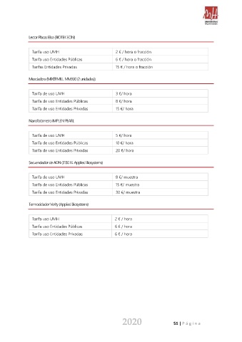 Tarifa de uso UMH 8 €/ muestra