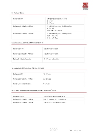Tarifa uso Entidades públicas 13 + IVA €/por placa de 96 pocillos