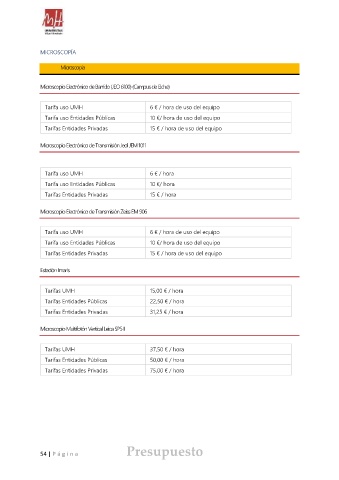 Tarifa uso UMH 6 € / hora de uso del equipo