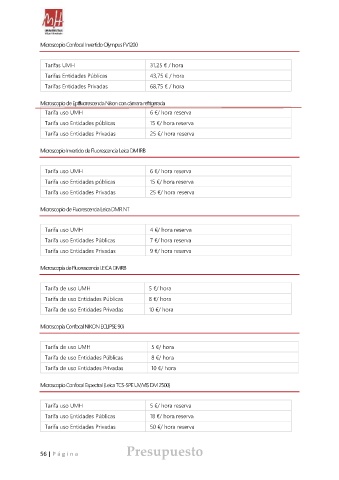 Tarifa uso Entidades Públicas 18 €/ hora reserva