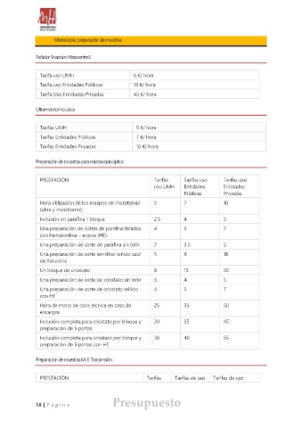 PRESTACIÓN Tarifas Tarifas uso Tarifas uso