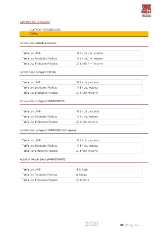 Tarifa Uso Entidades Privadas 20 €/ día /estante