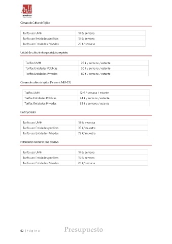 Tarifa uso Entidades Privadas 75 €/ muestra
