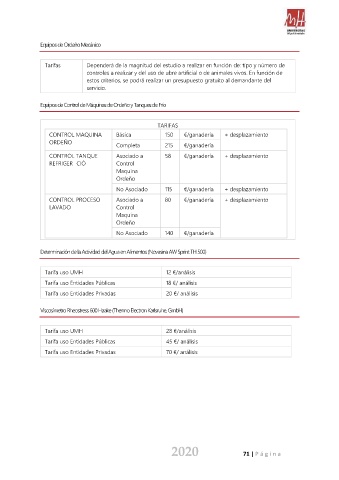 Tarifa uso Entidades Privadas 70 €/ análisis