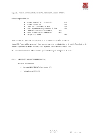 adquisición publicado en www.umh.es/deportes o el previsto para la facturación interna UMH.