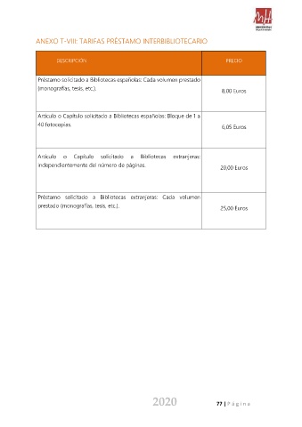 ANEXO T-VIII: TARIFAS PRÉSTAMO INTERBIBLIOTECARIO