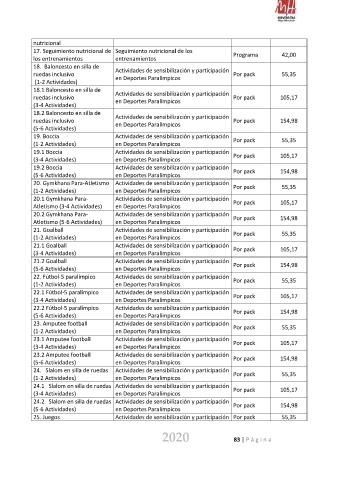 22. Fútbol-5 paralímpico Actividades de sensibilización y participación Por pack 55,35