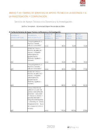 ANEXO T-XII: TARIFAS DE SERVICIOS DE APOYO TÉCNICO A LA DOCENCIA Y A