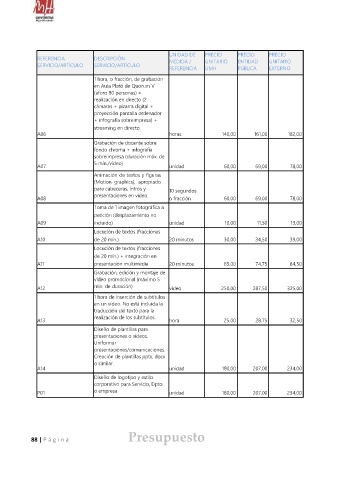 A11 presentación multimedia 20 minutos 65,00 74,75 84,50
