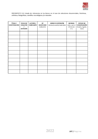 DOCUMENTO 2.4: Listado de referencias de los bienes en el caso de colecciones documentales, históricas,