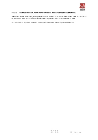 de adquisición publicado en www.umh.es/deportes o el previsto para la facturación interna UMH.
