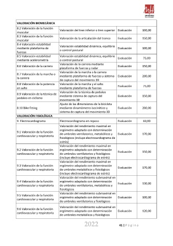9.4 Valoración de la función ergómetro adaptado con determinación Evaluación 130,00