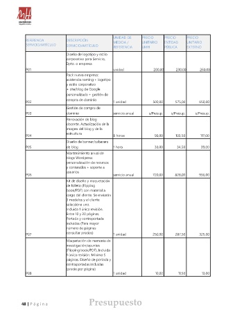 SERVICIO/ARTÍCULO SERVICIO/ARTÍCULO REFERENCIA UMH PÚBLICA EXTERNO