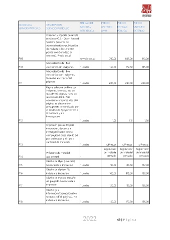 SERVICIO/ARTÍCULO SERVICIO/ARTÍCULO MEDIDA / UNITARIO ENTIDAD UNITARIO