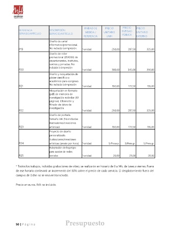 P24 artísticas (precio por hora) 1 unidad S/Presup. S/Presup. S/Presup.
