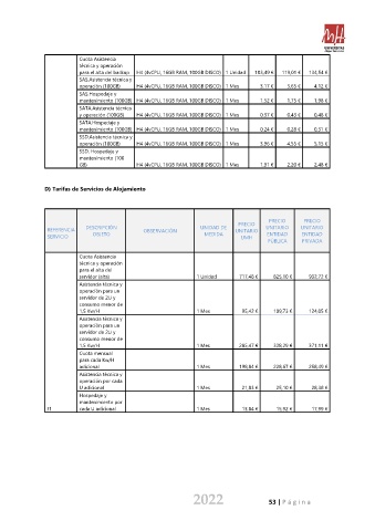 D) Tarifas de Servicios de Alojamiento