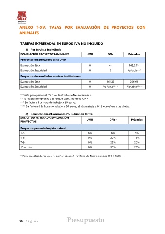 * Tarifa para personal CSIC del Instituto de Neurociencias.