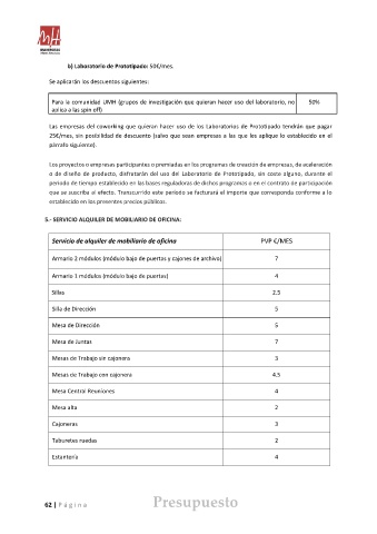 b) Laboratorio de Prototipado: 50€/mes.