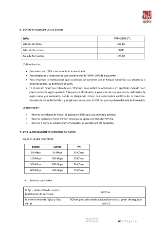 6.- SERVICIO ALQUILER DE LAS SALAS: