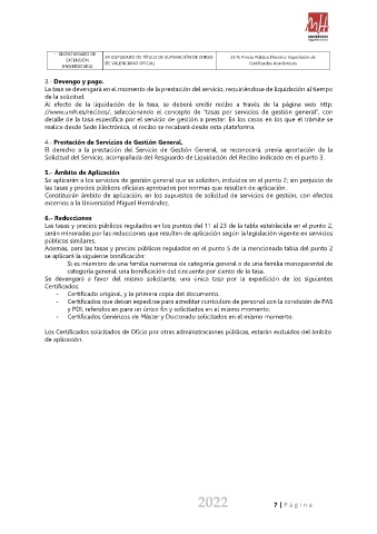 //www.umh.es/recibos/, seleccionando el concepto de “tasas por servicios de gestión general”, con