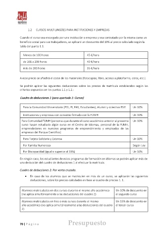 Para Comunidad FUMH (personas que durante el curso académico anterior al presente Un 10%