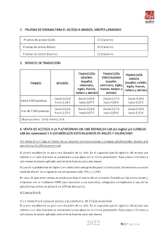 El uso de la plataforma en inglés y en valenciano será gratuito para la Comunidad Universitaria que esté