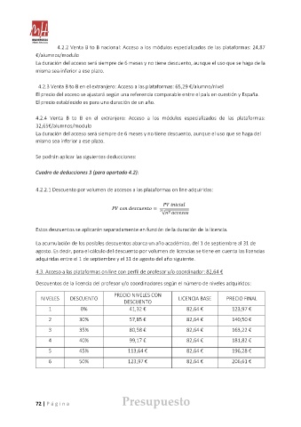 4.2.2.1 Descuento por volumen de accesos a las plataformas on line adquiridas: