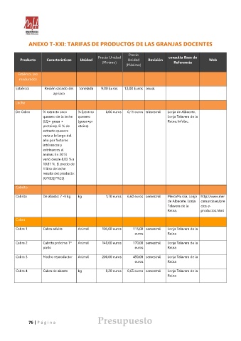 ANEXO T-XXI: TARIFAS DE PRODUCTOS DE LAS GRANJAS DOCENTES