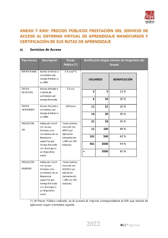 ANEXO T-XXIV: PRECIOS PÚBLICOS PRESTACIÓN DEL SERVICIO DE