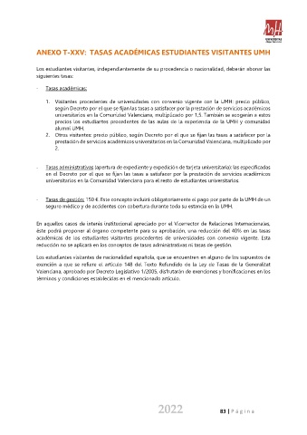 ANEXO T-XXV: TASAS ACADÉMICAS ESTUDIANTES VISITANTES UMH