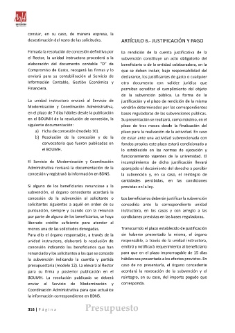 presupuestaria (modelo 12). La elevará al Rector caso de no presentarla, el órgano concedente
