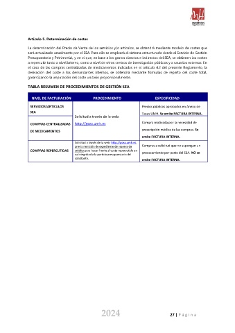 La determinación del Precio de Venta de los servicios y/o artículos, se obtendrá mediante modelo de costes que