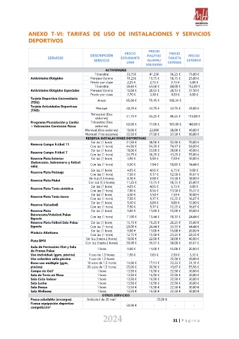 ANEXO T-VI: TARIFAS DE USO DE INSTALACIONES  Y SERVICIOS